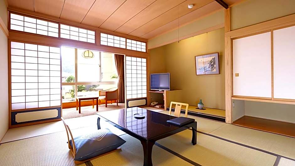 Spacious accommodations featuring 2 rooms with tatami (woven-straw) flooring and Japanese futon bedding. One of the seating areas comes with a traditional heated table, where guests can warm their legs. Amenities include a flat-screen TV and a personal safe, along with a fridge and complimentary green tea. The room comes with yukata robes and a private bathroom with a bathtub and hairdryer.